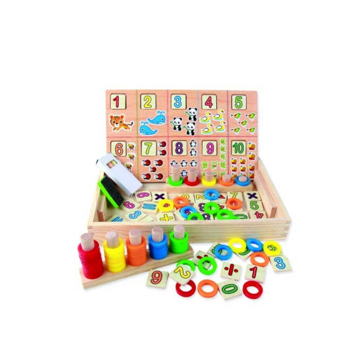 - This learning board has two sides, one side is math, another size is black board, kids can write on it
